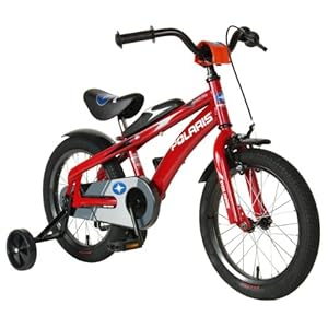 An ideal bike for kids still learning to ride, the Polaris Edge LX160 16-inch bike is safe, reliable, and tough. The bike is outfitted with a sturdy "T" frame and 16-inch pneumatic tires that hold up to heavy use. The super-strong training wheels and chain guard, meanwhile, will help your child get up to speed without getting hurt. Other features include a front caliper brake and a rear coaster brake, a fully padded top bar, fenders, and spoke wheels.