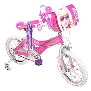 Little girls learning to ride will enjoy the pink Barbie bike from
